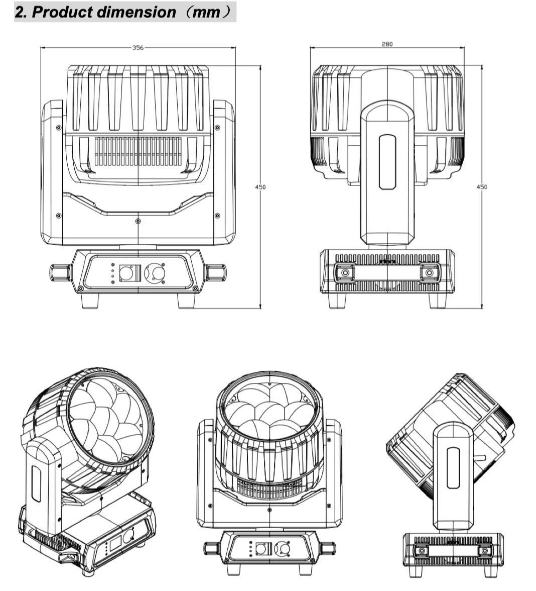Control mode: DMX512, RDM, Auto Mode, master-slave, Sound activation, Artnet(available)